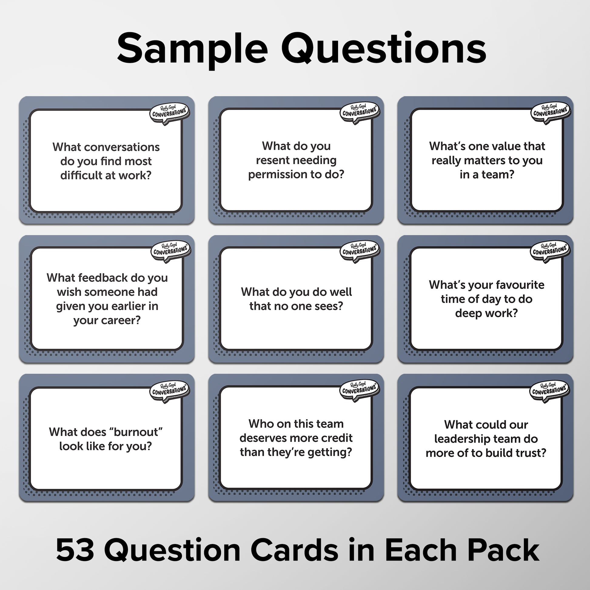 Ideal for team meetings, off-sites, away days, leadership sessions, onboarding, or casual check-ins, these cards are designed to help your people feel heard, valued and ready to thrive.